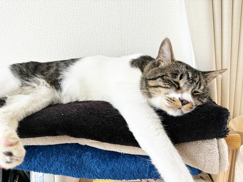 はまぐりの暴れ方が半端ないので、親猫二匹はぐったり気味です。