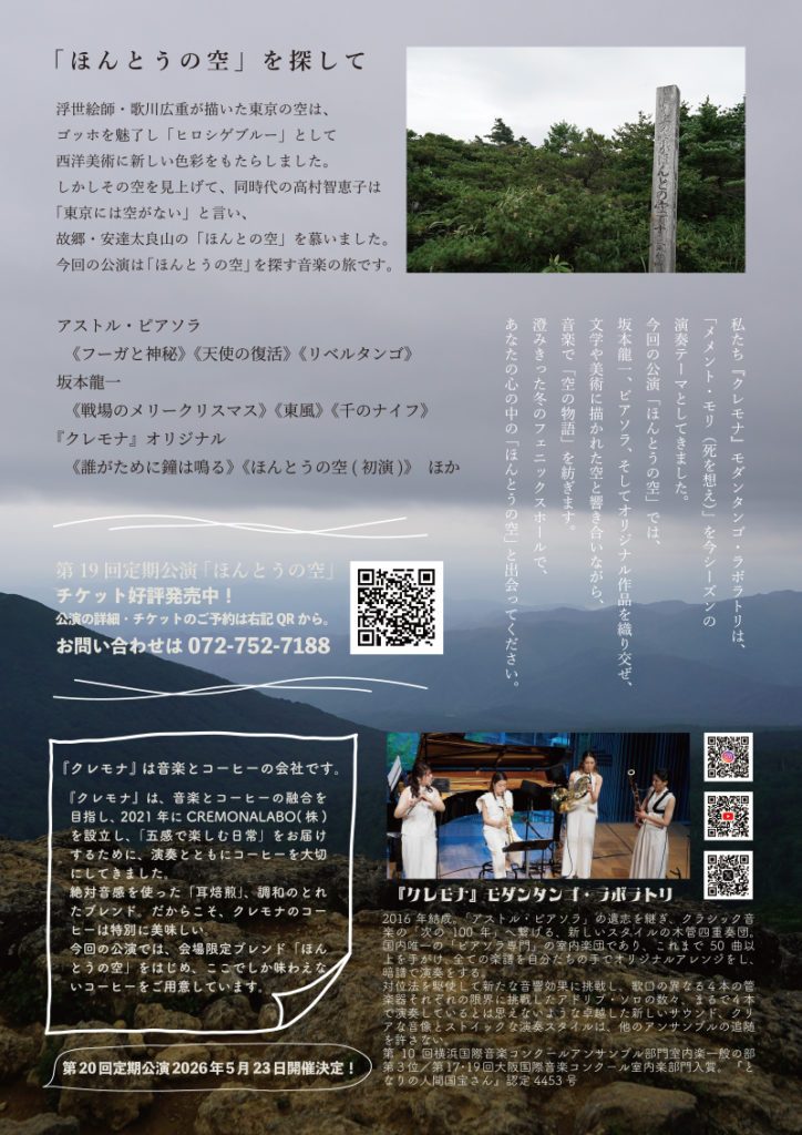 青空じゃないのも渋くて良いなと気に入っています。チケットも少しずつご予約いただいております!